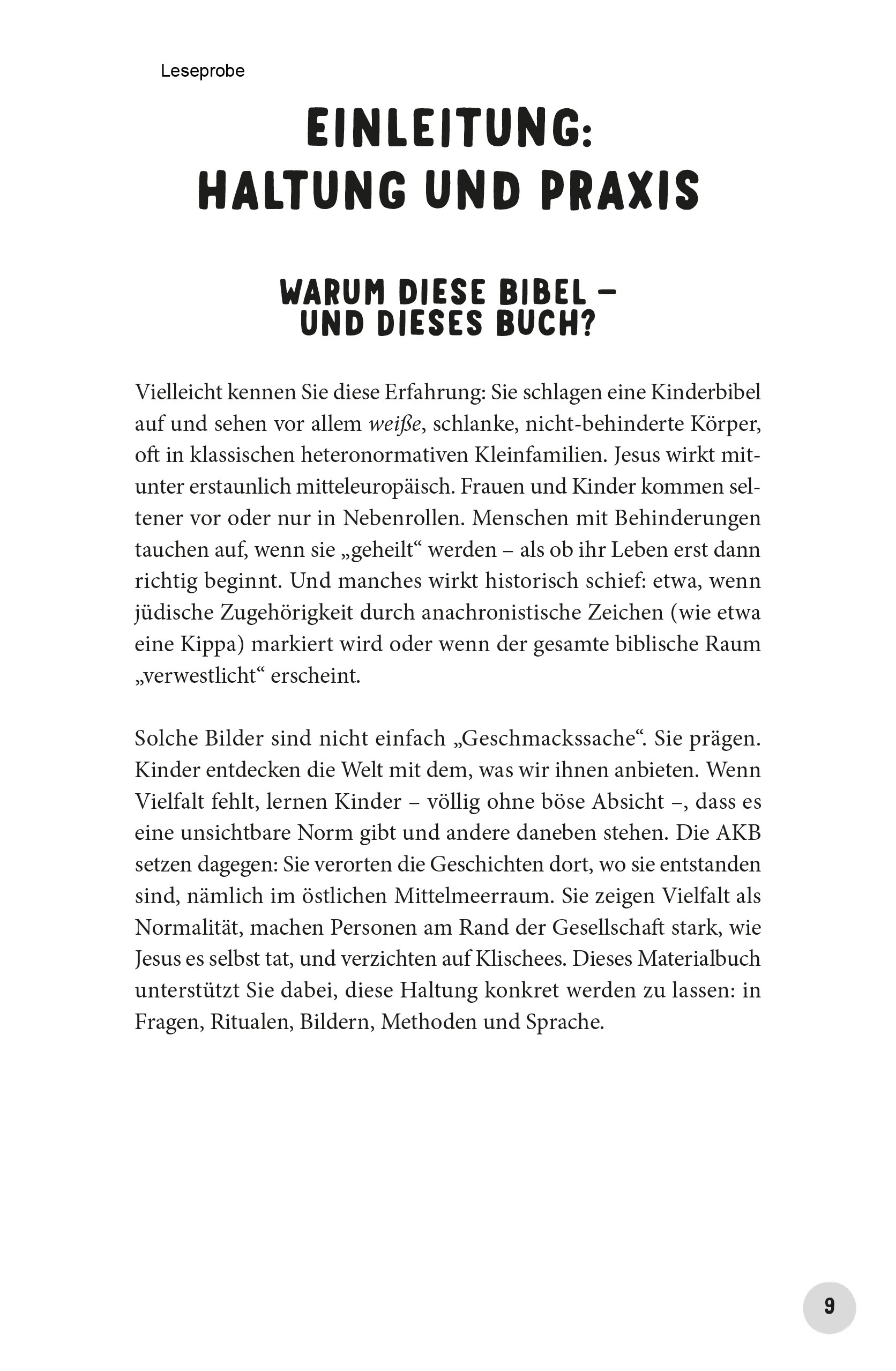 Dieses Praxisbuch hilft weiter: Mit flexibel einsetzbaren Bausteinen, religionspädagogisch fundierten Ansätzen und kreativen Ideen! Geeignet für alle, die mit der Alle-Kinder-Bibel und der Alle-Kinder-Bibel 2 arbeiten, wie Mitarbeitende in der Kinderkirche, Religionslehrer*innen, Erzieher*innen, Gemeindepädagog*innen und Pfarrpersonen. Dabei werden auch die eigenen Kompetenzen im Bereich von Vielfaltssensibilität und deren Vermittlung gestärkt. Enthalten sind u.a.: Einleitungen und Lesehilfen für die Alle-Kinder-Bibel-Geschichten, die den Blick verändern und Unentdecktes aufzeigen. Bausteine für Unterricht, Gruppenstunden und Kindergottesdienste, die ohne viel Vorbereitung direkt umgesetzt werden können. Tipps und Ideen zum Einsetzen des umfangreichen Downloadmaterials.