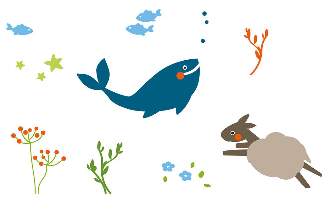 Zwei Motivwelten (Wal & Schäfchen) stehen dabei zur Auswahl.