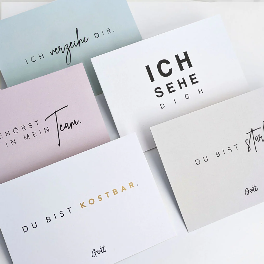 Dieses Postkarten-Set aus der Kollektion himmlisch vereint christliche Botschaften mit klaren, ermutigenden Affirmationen. Jede Karte trägt einen positiven Impuls, der mit Gott unterschrieben ist. Worte, die mitten ins Herz treffen und täglich an den eigenen Wert erinnern: